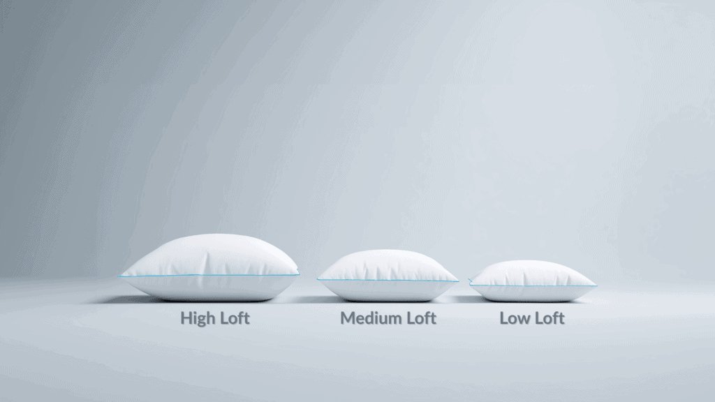 When you hear “pillow loft,” think about how thick a pillow looks from the side. Pillows generally fall into three ranges: